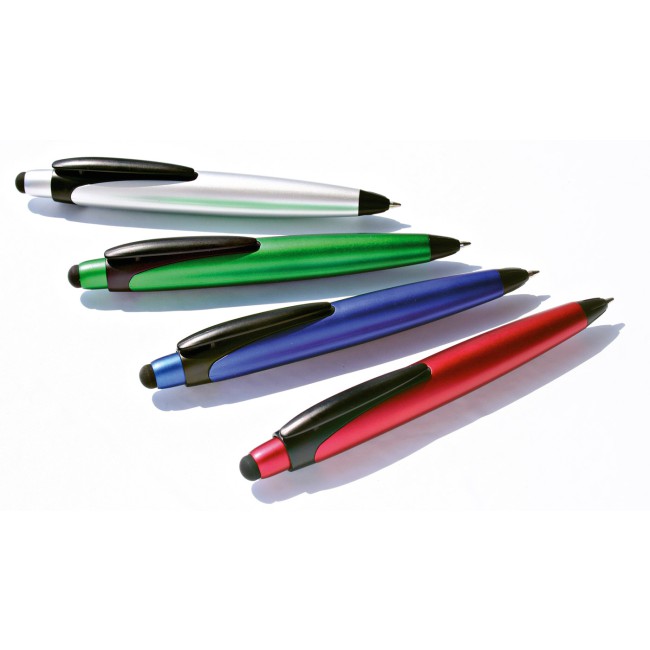 Penna sfera con gommino i-touch refil blu clip plastica nera particolari neri.