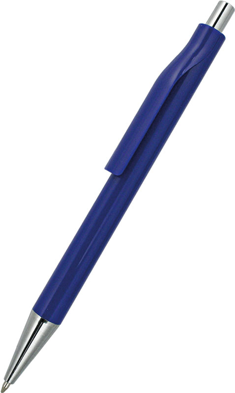 Penna sfera a scatto, fusto e clip blu, plastica,refil blu.