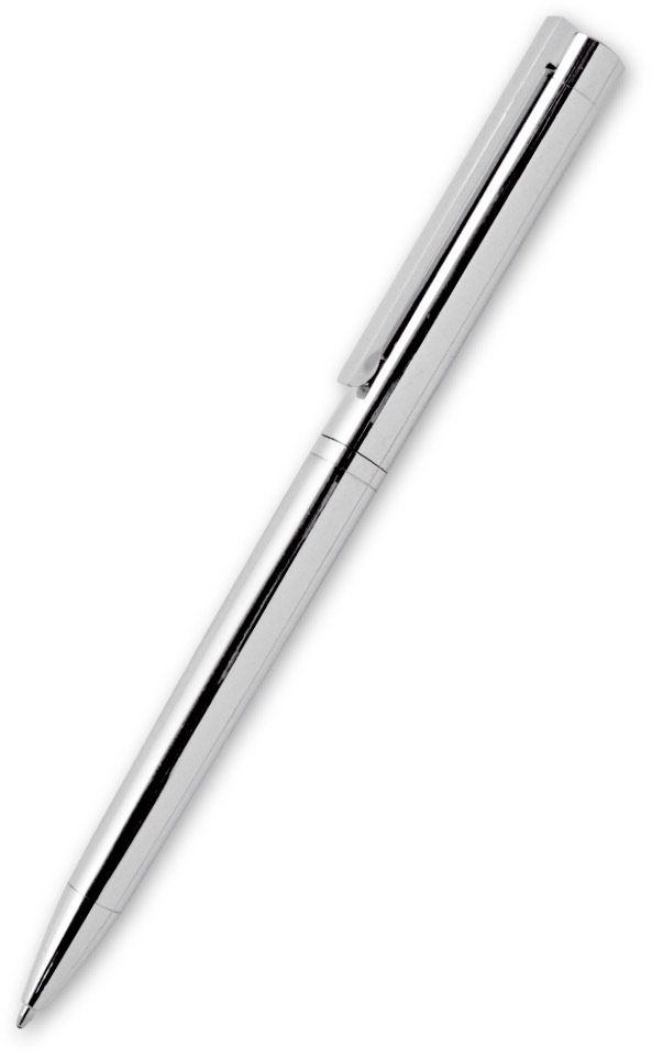 Penna a sfera metallo cromato. Meccanismo a rotazione.