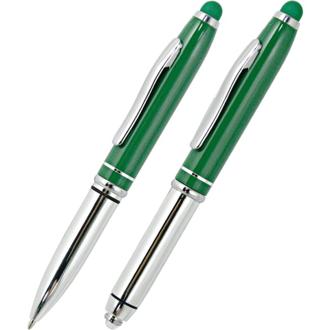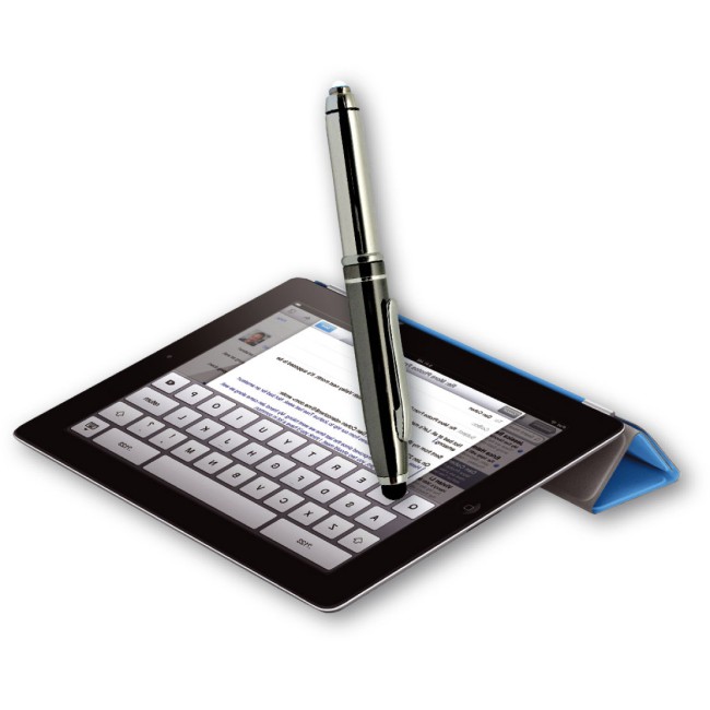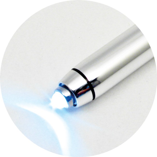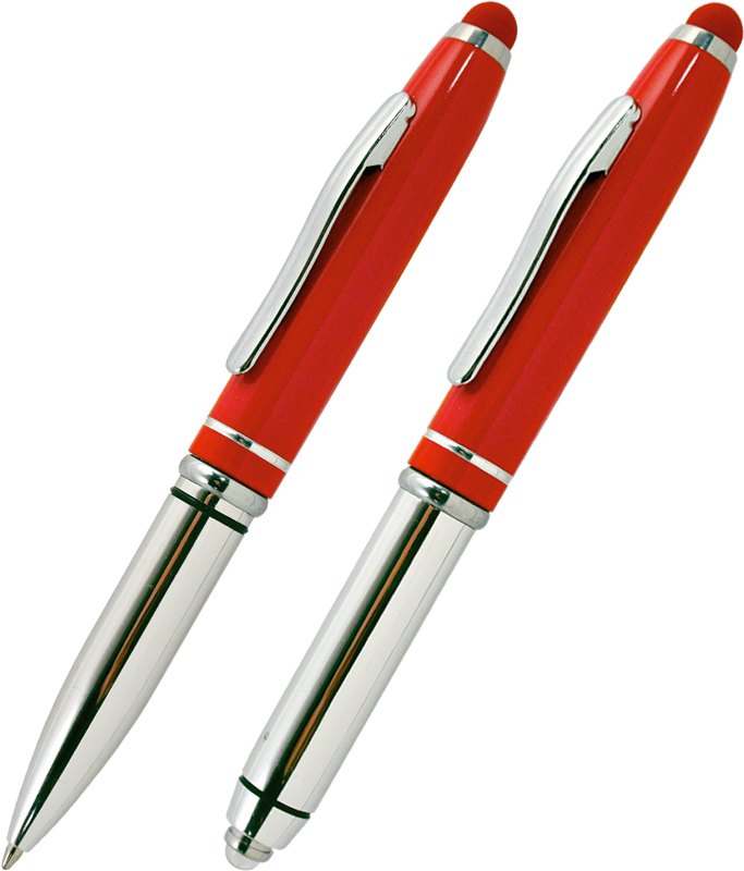 Penna sfera gommino capacitativ I-touch. Dotata di luce bianca. Materiale alluminio laccato colorato e metallo. Refil ink blu 1.0 mm.