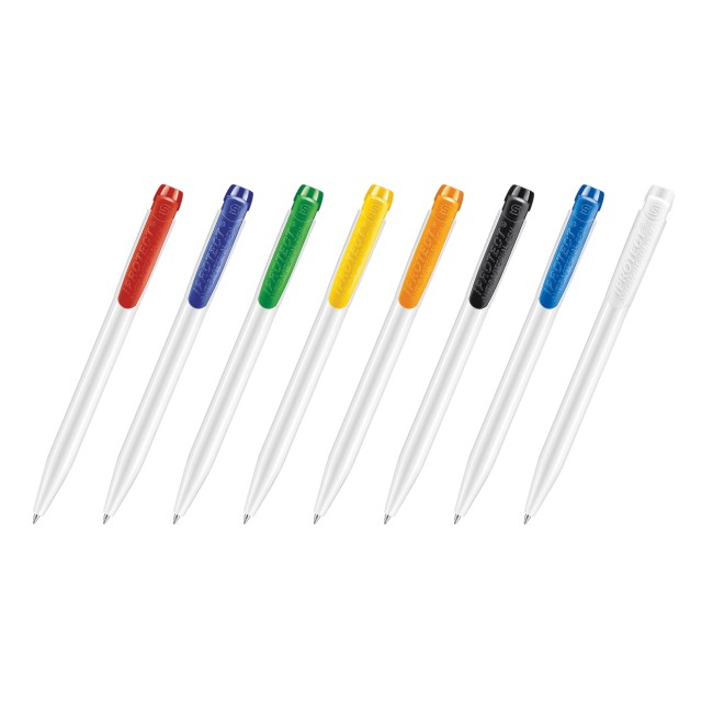 Penna a sfera antibatterica agli ioni di zinco, in abs stampato con trattamento antibatterico resistente all'acqua, graffi e raggi UV.