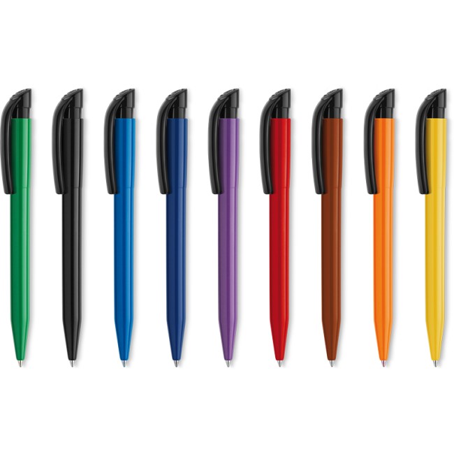 Penna sfera a scatto, fusto plastica colorata Refil blu.