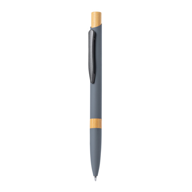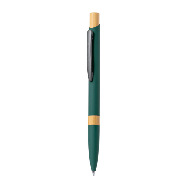 Penna in alluminio con inserti in bambù e meccanismo a pulsante
