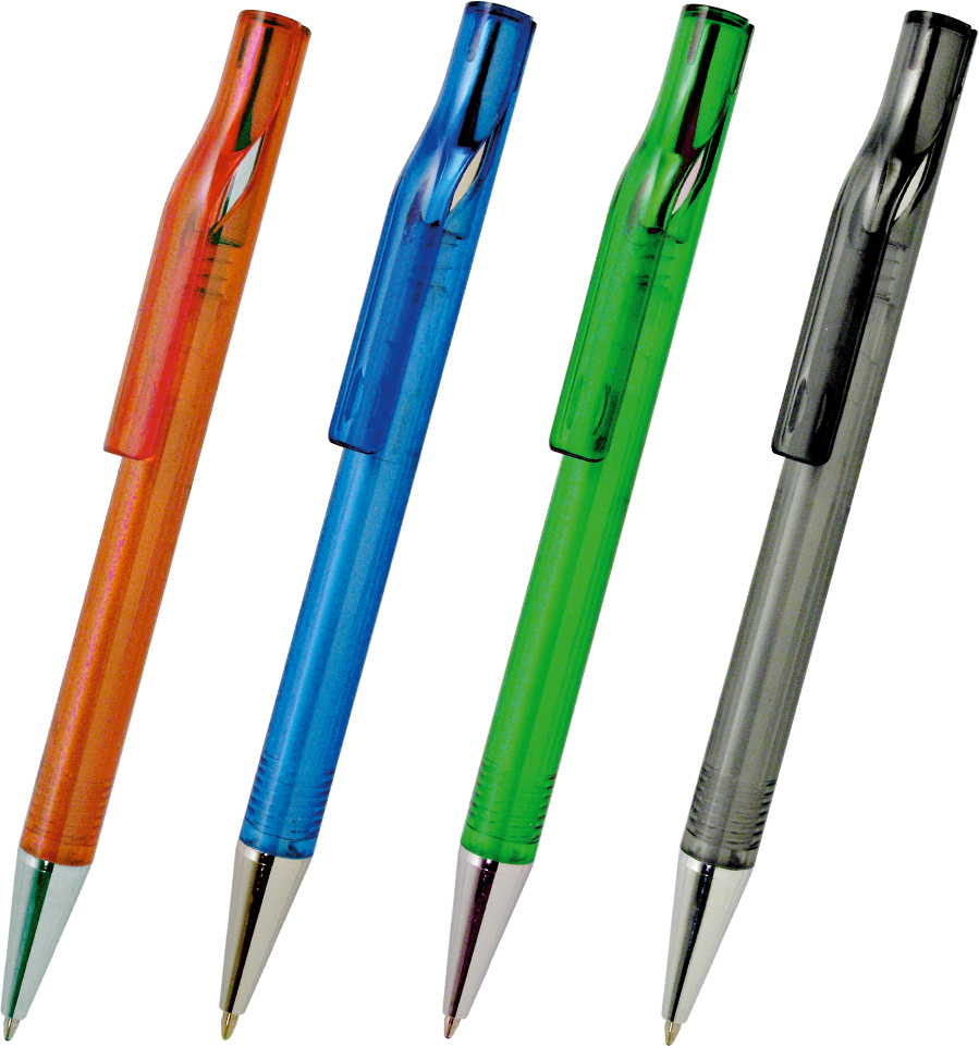 Penna a sfera in plastica colorata con meccanismo a scatto. I particolari silver aggiungono un tocco di eleganza, mentre il refill blu ink 1.0 mm garantisce una scrittura fluida e precisa.