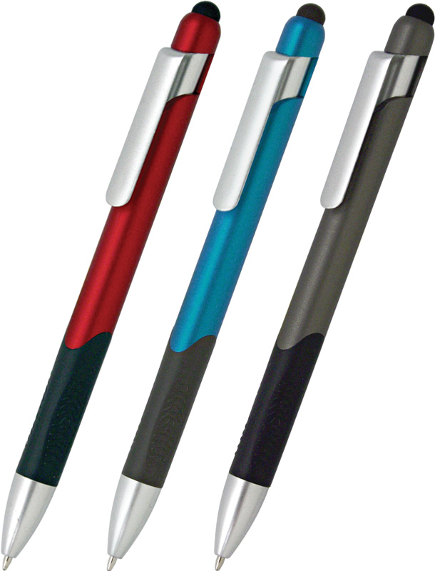 Penna a sfera a scatto con impugnatura gommata e refil blu