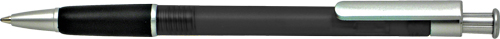 Penna sfera a scatto, fusto in plastica colorato con particolari in silver. Refil blu.