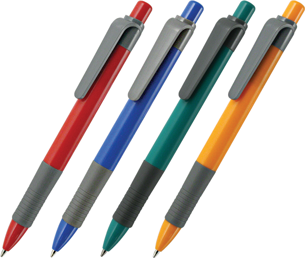 Penna a sfera in plastica colorata con impugnatura in gomma per una presa confortevole. Dotata di meccanismo a scatto e refil blu da 1.0 mm, offre una scrittura fluida e precisa. La sua leggerezza e design accattivante la rendono ideale per l'uso quotidiano.