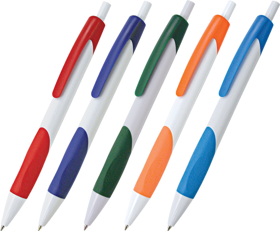 Penna a sfera in plastica con impugnatura gommata e meccanismo a scatto