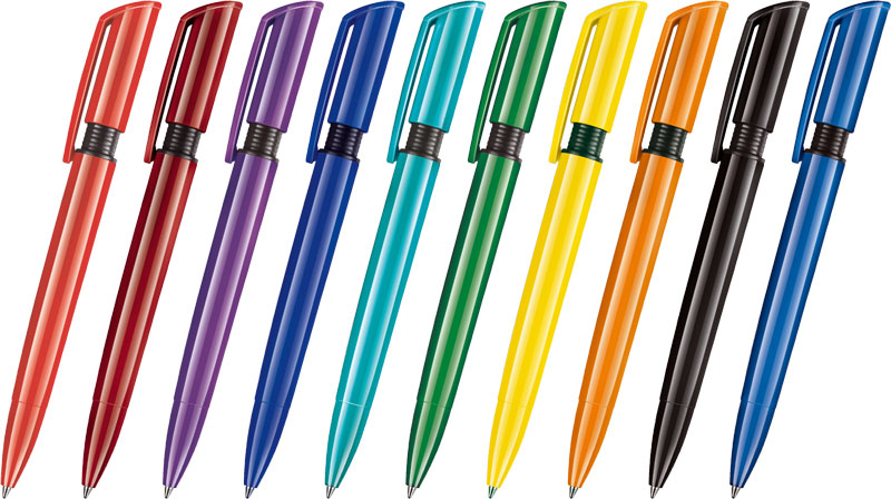Penna a sfera a scatto con fusto in plastica colorata e refil blu. Progettata per un uso pratico, questa penna offre un design semplice e funzionale, ideale per scrivere in modo fluido. Personalizzabile con logo aziendale per eventi o regali promozionali.