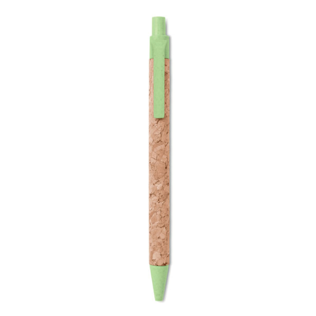 Penna a sfera push realizzata con un mix di sughero e plastica ABS, un'opzione ecologica. Dotata di refill blu, è ideale per chi cerca un accessorio di scrittura sostenibile. Personalizzabile con logo per un uso aziendale.