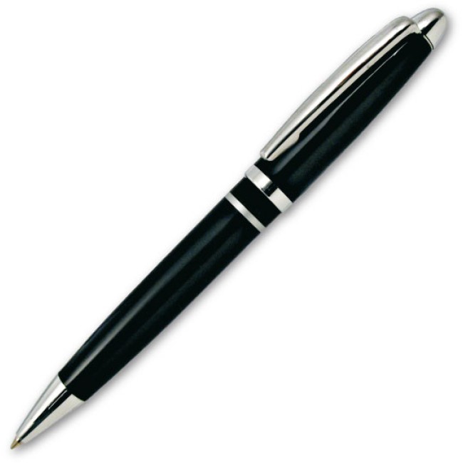 Penna sfera a rotazione, plastica colore nero, particolari silver, punta TC, refil nero.