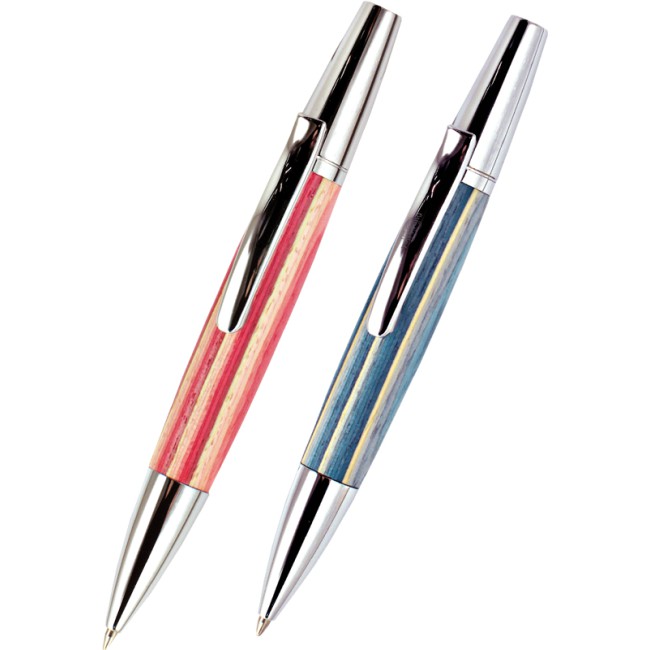 Penna sfera you young coveri in legno multicolore rosso a rotazione rifinit.cromate refil nero astuccio legno fascetta in cartoncino