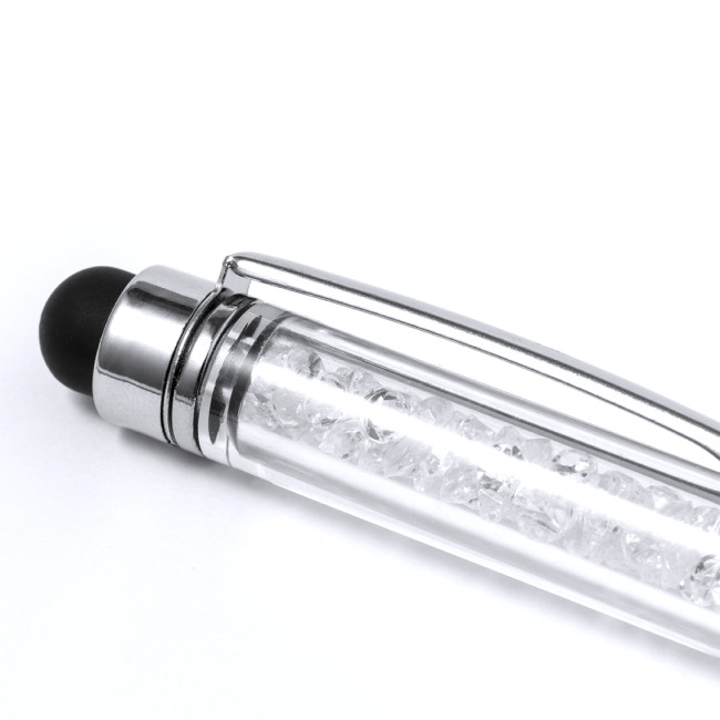 Penna touch in bambù con cristalli e meccanismo a rotazione
