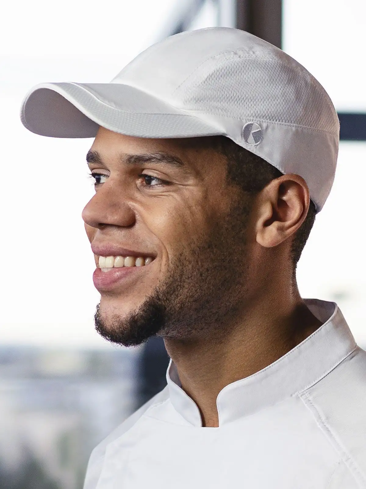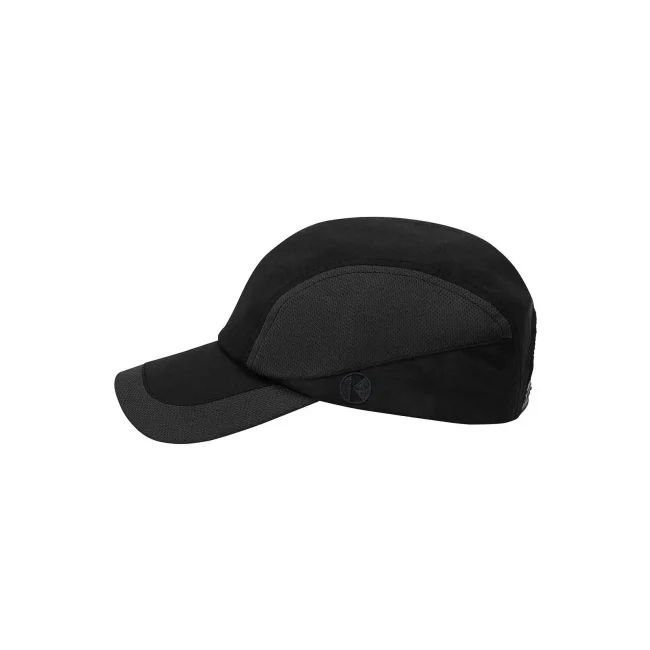 Tessuto esterno: 100% poliestere, 95 g/m². Lato inferiore visiera: 100% poliestere, 95 g/m². Cappellino a 6 pannelli leggero e traspirante dal look sportivo, ad asciugatura rapida. Pannelli che vanno dalla parte posteriore a quella anteriore, pannelli laterali in jersey piqué, regolabile con chiusura Click & Snap, fascia antisudore integrata, area della fronte non rinforzata, bordo decorativo tono su tono in jersey piqué sulla visiera curva. STANDARD 100 by Oeko-Tex®.