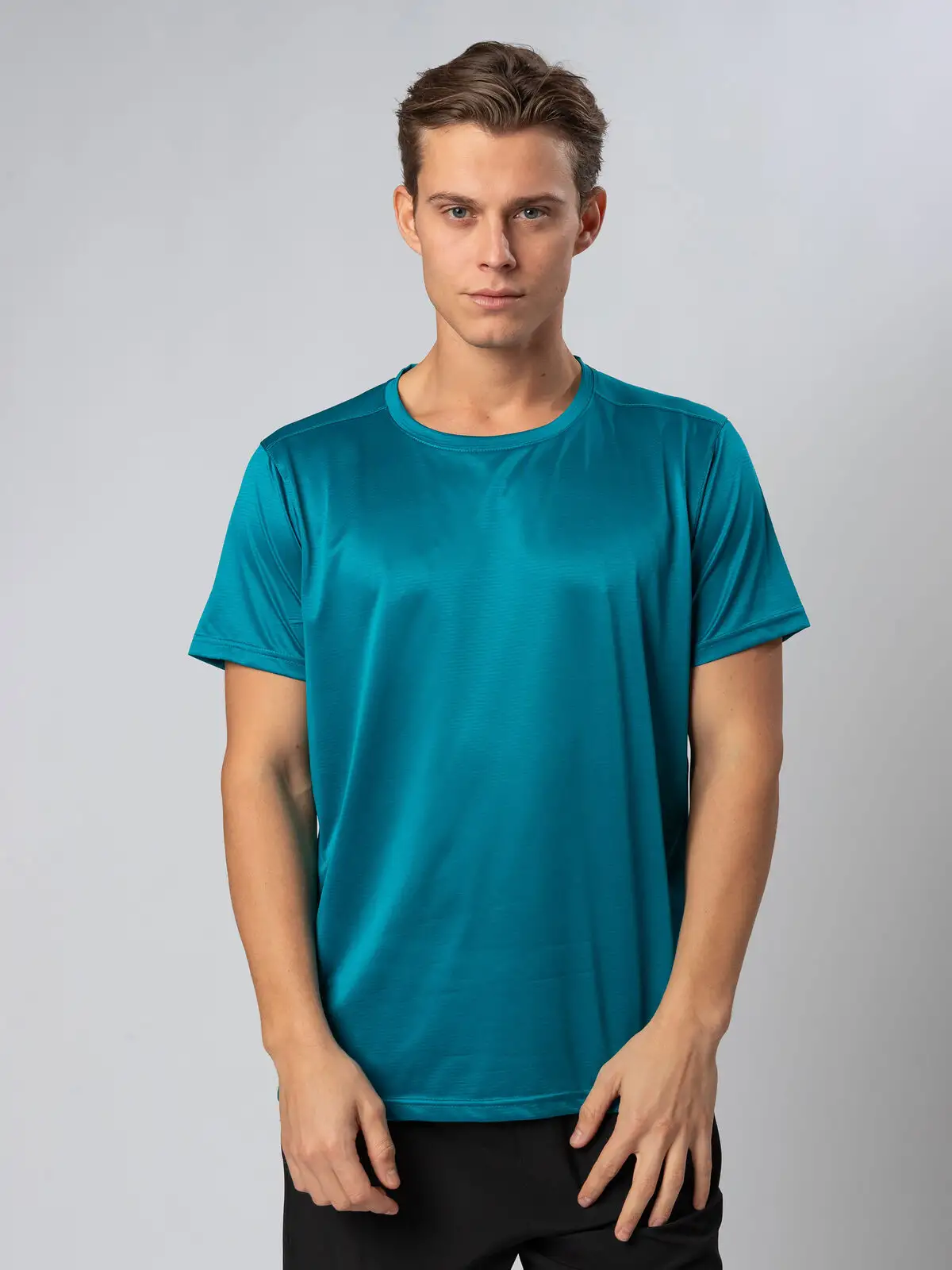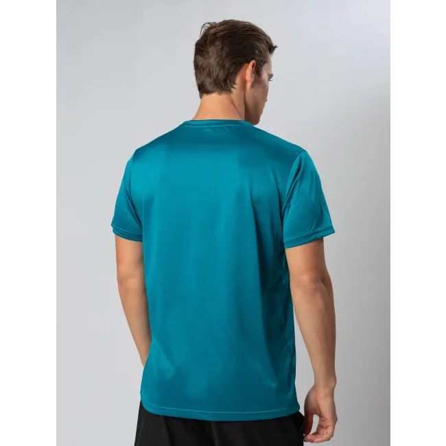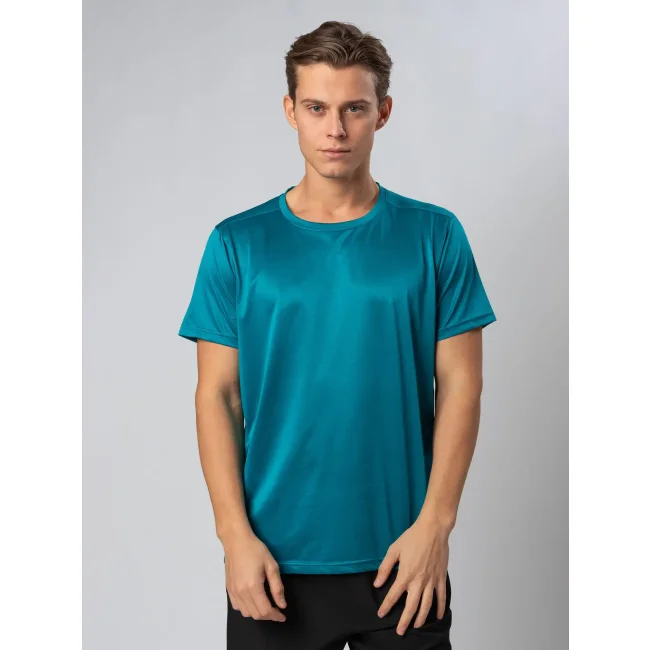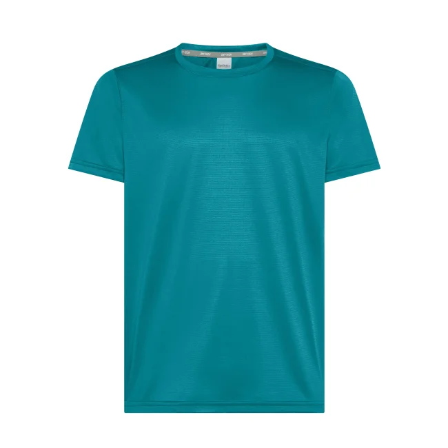 100% poliestere. T-shirt in tessuto performance con parasudore in contrasto, maniche set-in, cuciture laterali resistenti. Dotata di etichetta strappabile per un comfort ottimale.