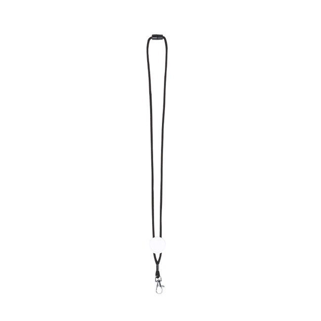 Lanyard in resistente e morbido poliestere in una varietà di colori vivaci. Con chiusura a scatto staccabile al collo, accessorio moschettone in metallo e passante centrale per la stampa.