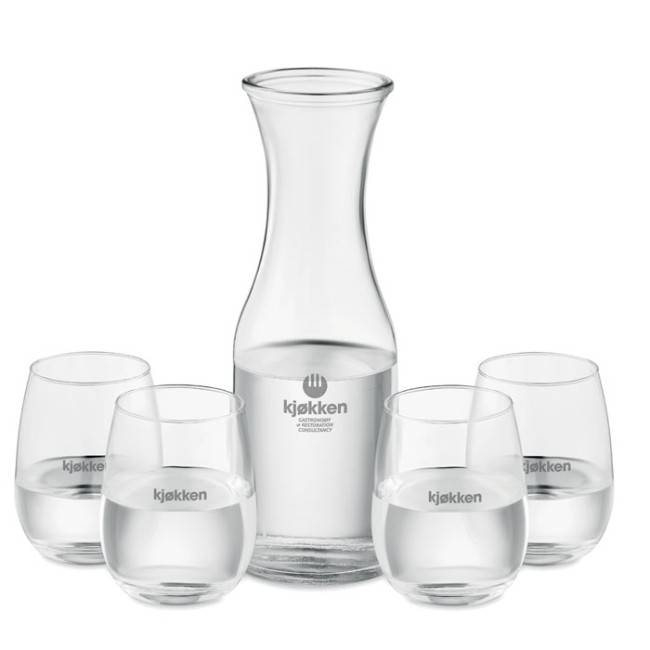 Set di bevande in vetro riciclato. Include: Caraffa (1L) con coperchio di sughero e 4 bicchieri (420 ml). Servite delle bevande fresche con questa elegante caraffa di vetro e set di bicchieri. Il coperchio di sughero conferisce un aspetto naturale. Il sughero e il vetro riciclato ne fanno una scelta sostenibile.