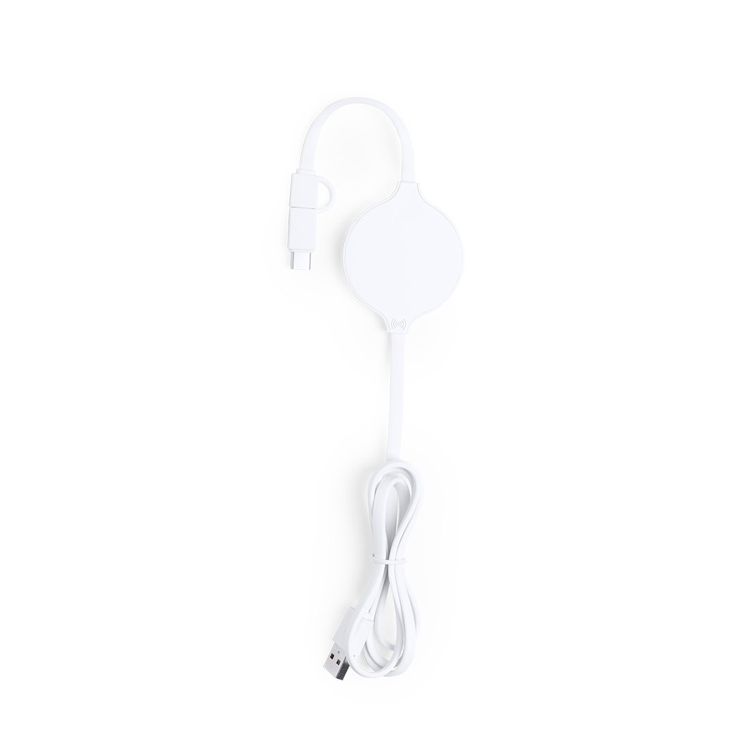 Caricatore wireless ultracompatto dal design monocromatico bianco. Doppia connessione micro USB e Lightning, con adattatore Type-C e indicatore luminoso di ricarica. Compatibile con i dispositivi dotati di tecnologia di ricarica wireless.