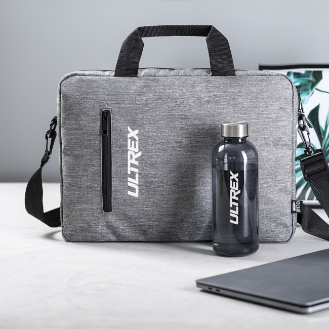 Elegante portadocumenti della linea nature in resistente RPET 600D effetto melange, realizzato in plastica riciclata per favorire il riutilizzo dei rifiuti plastici e contribuire alla sostenibilità del pianeta. Dettagli neri, include scomparti interni imbottiti per computer fino a 15 pollici e tablet fino a 10 pollici. Accessorio posteriore per il fissaggio sul trolley, tasca esterna con cerniera, manici rinforzati e confortevoli, tracolla regolabile con chiusura a moschettone e spallina abbinata.Etichetta distintiva con logo RPET.
