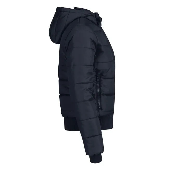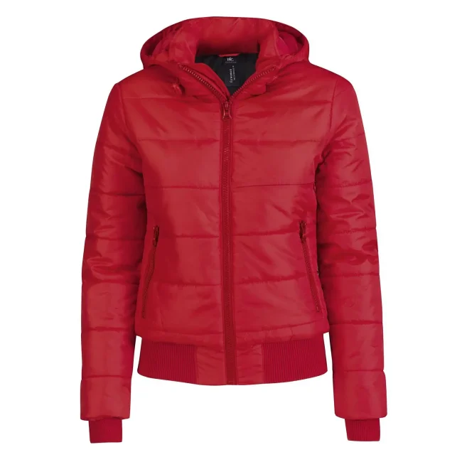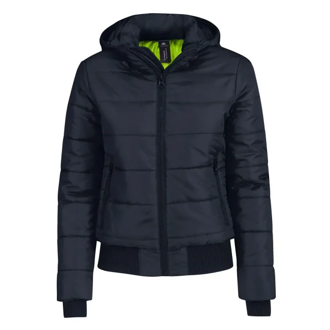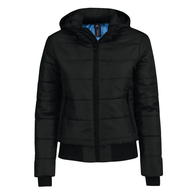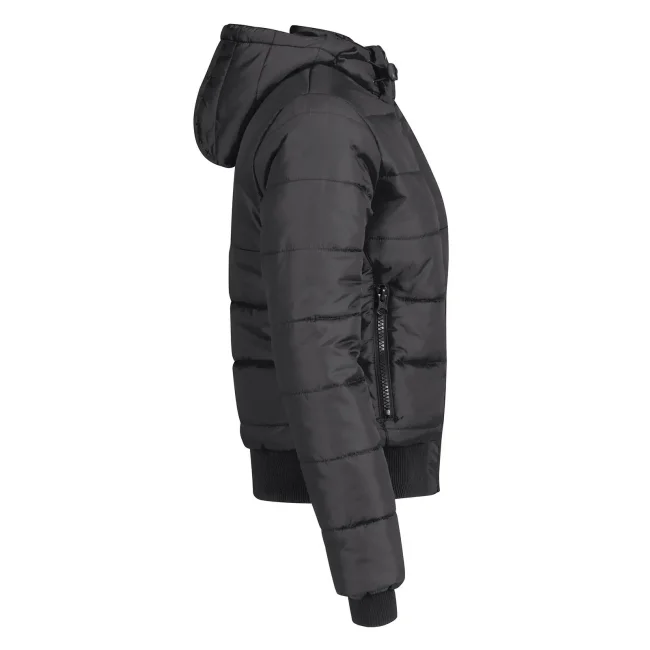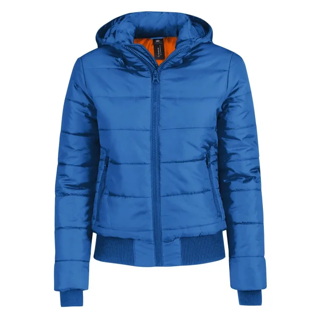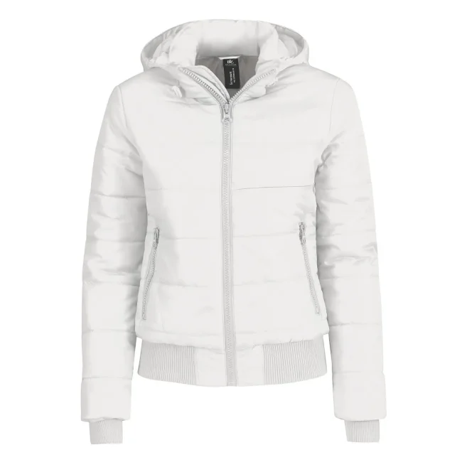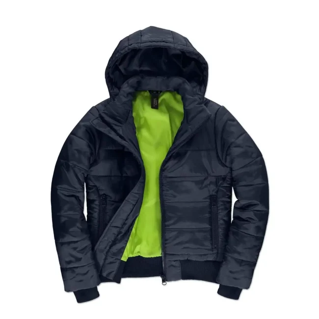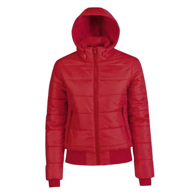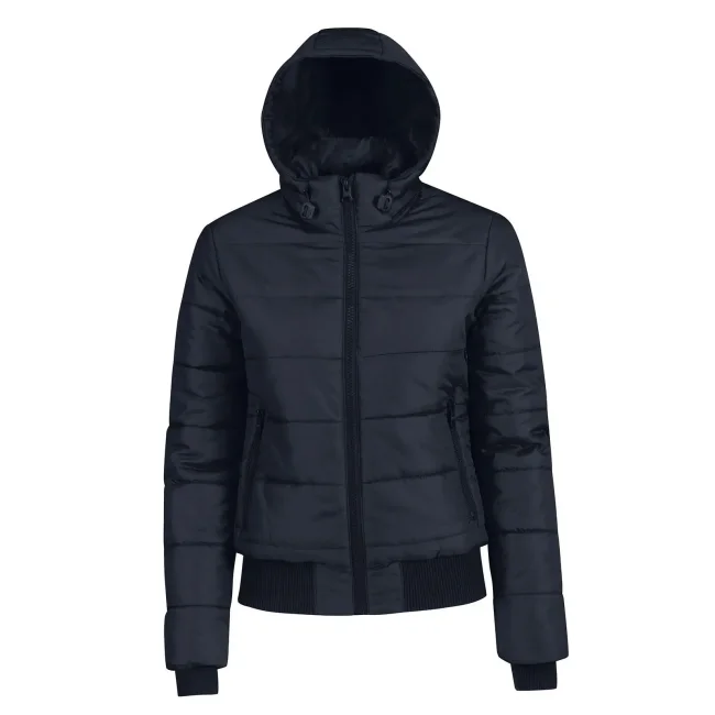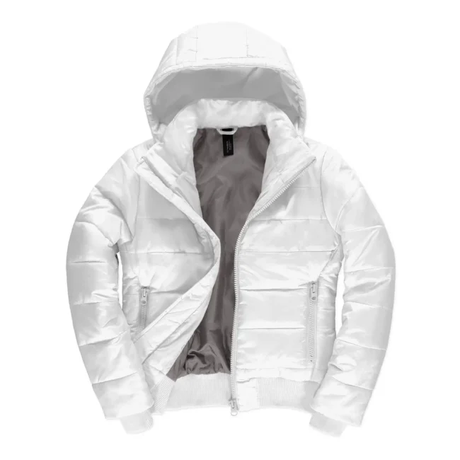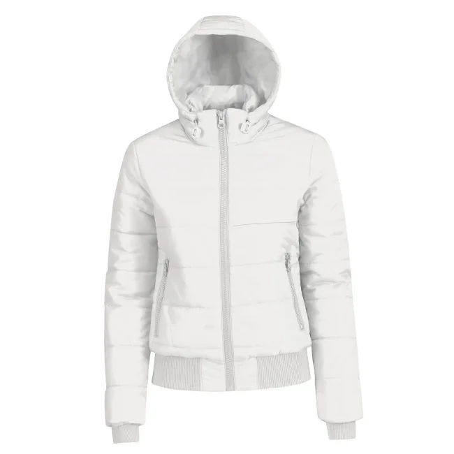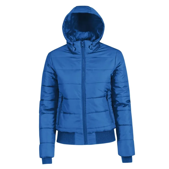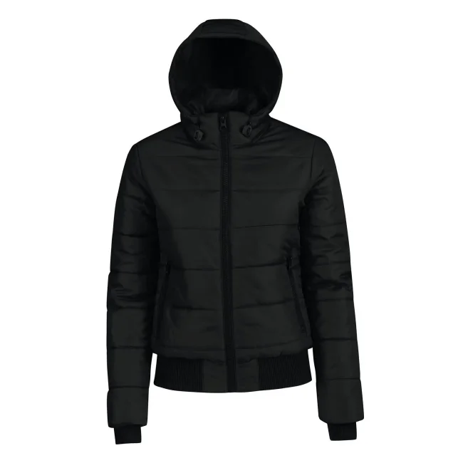Piumino Superhood realizzato in poliestere taffetà, offre impermeabilità e isolamento termico. Dotato di cappuccio imbottito regolabile e removibile, presenta un colletto sostenuto e fodera interna di colore contrastante. Le due tasche laterali con zip garantiscono praticità. Personalizzabile con logo aziendale.