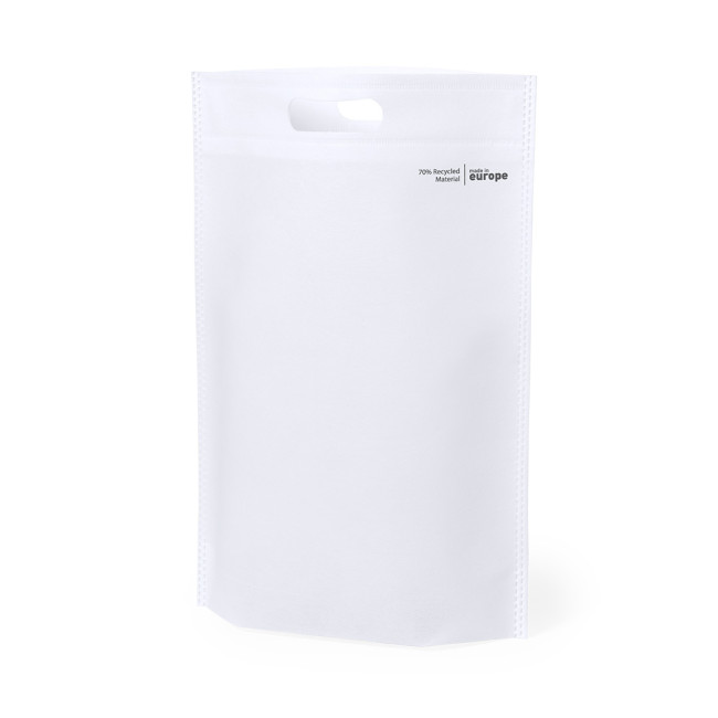 Borsa della linea Natura, realizzata in TNT riciclato da 70g/m2. Prodotta in Europa, con finitura termosaldata, soffietto alla base, manico fustellato rinforzato ed etichetta eco/made in sulla borsa.