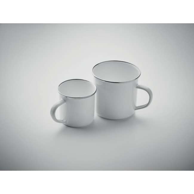 Tazza vintage in metallo sublimato con strato di smalto. Capacità 200 ml.