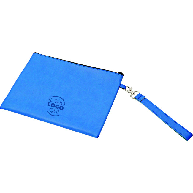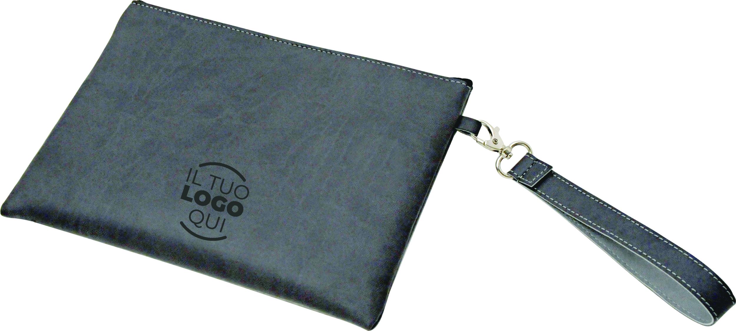 Pochette in Vivella Reflexa, formato A5 con chiusura a zip. Completo di pratico laccio con moschettone.