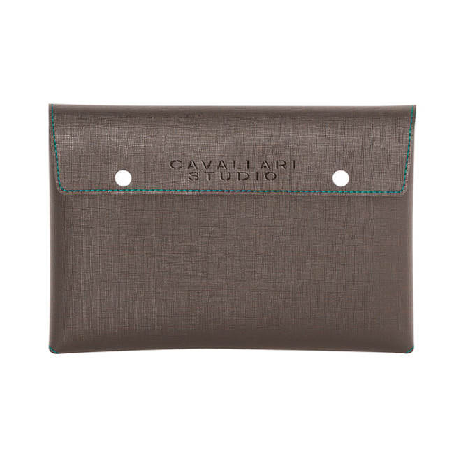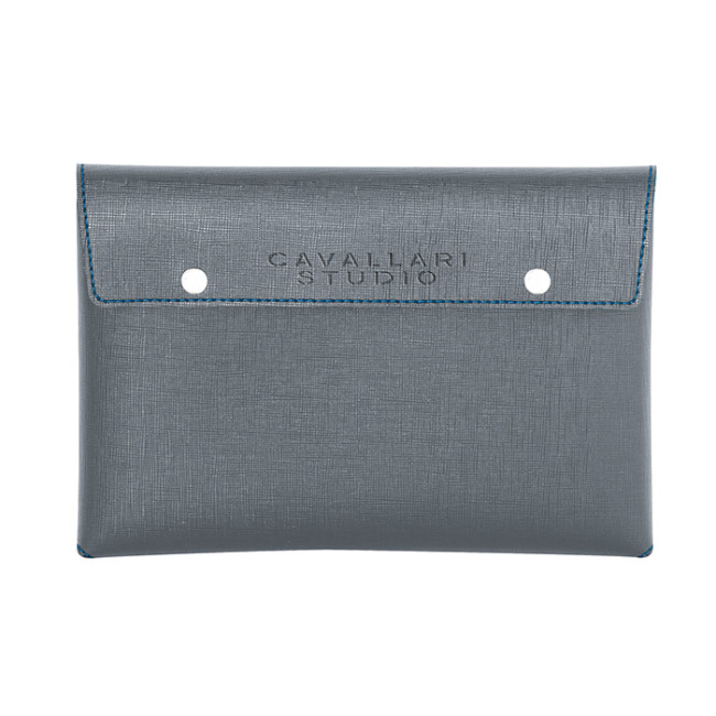 borsello pochette/portadocumenti bicolore chiusura con bottoni a pressione corredato di astuccio shopper Cavallari su richiesta: CA800 O CA810 tecnica di stampa consigliata: serigrafica - incisione - a caldo