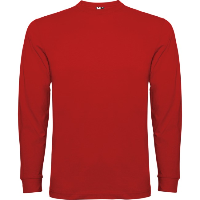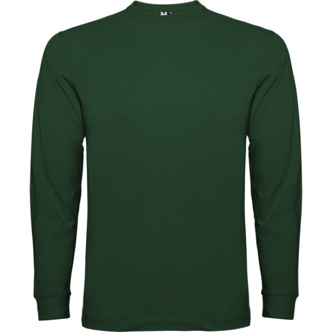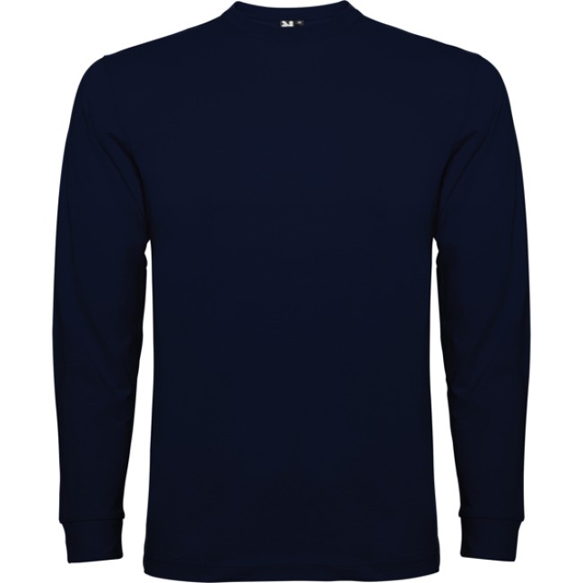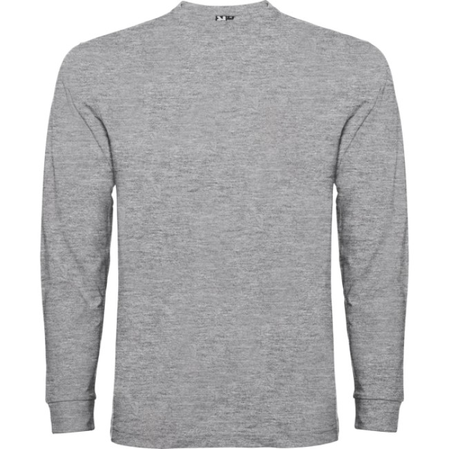 T-shirt manica lunga, tessuto tubolare, girocollo a 4 strati e polsini in costina 1x1. Copri cuciture rinforzate su collo e spalle.