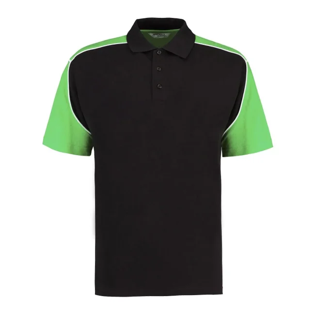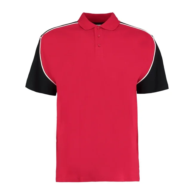 100% cotone. Polo sportiva con inserti su spalle e maniche di colore contrastante, ampia vestibilità, tre bottoni tono su tono, struttura con cuciture laterali.