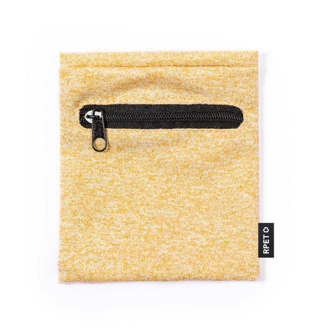 Polsino pratico realizzato in morbido poliestere RPET, ideale per riporre piccoli oggetti grazie alla tasca nera con zip. Disponibile in un'ampia gamma di colori, presenta la caratteristica etichetta RPET. Il materiale RPET è prodotto con plastica riciclata, contribuendo alla sostenibilità ambientale e al riutilizzo dei rifiuti plastici.