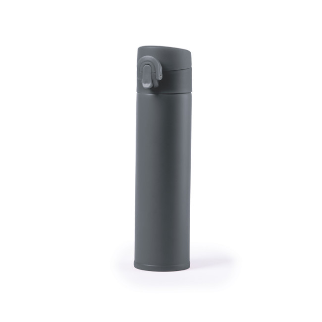 Thermos in acciaio inox con capacità di 330 ml. Con doppia parete per una migliore e più duratura conservazione della temperatura e sistema di apertura facilitata con pulsante. Disponibile in un'ampia gamma di colori e presentato singolarmente in una scatola dal design accattivante.Manuale di istruzioni disponibile in spagnolo e inglese.