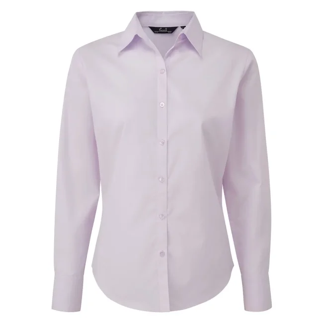 65% poliestere, 35% cotone. Camicia manica lunga in popeline, finiture con pieghe sul retro e sul davanti per un taglio piu' aderente, colletto morbido, due bottoni sui polsini. (Col. WHIT: 115 g/m²)