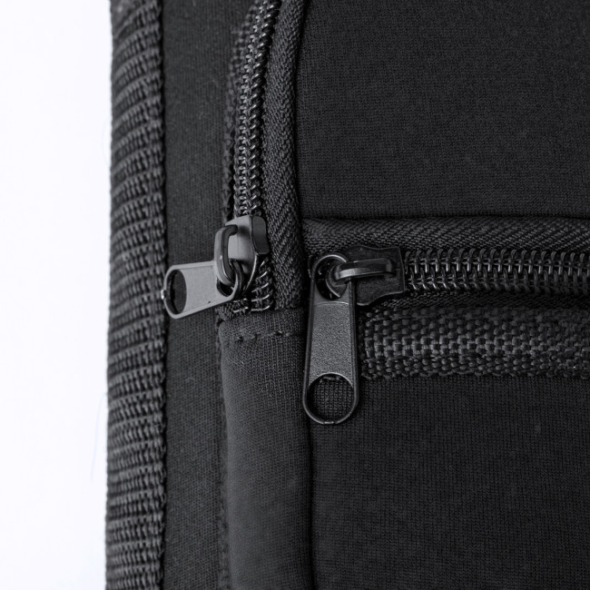 Portabottiglie fino a 1,5L, realizzato in soft shell. Dotato di chiusura a coulisse e tracolla regolabile per un trasporto comodo. Include tasche anteriori con cerniera per riporre piccoli oggetti. Confezionato singolarmente in una borsa riciclata.