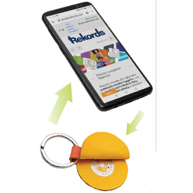 Portachiavi in Vivella Reflexa colorata con la possibilità dii inserire all'interno un NFC Tag.