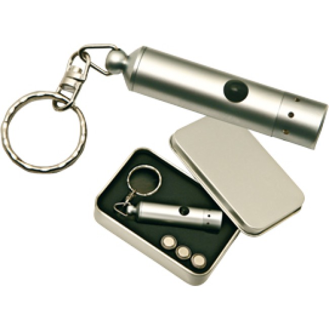 Portachiavi "WRC" con luce in elegante astuccio in metallo, pile incluse. Confezione in scatola di cartoncino.