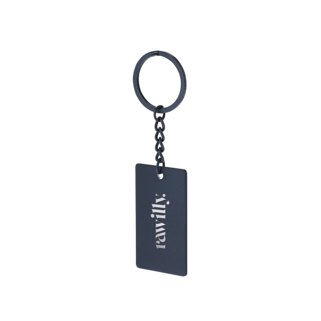 Portachiavi in acciaio inox con finitura gommata, progettato per una marcatura laser di alta qualità. Questo accessorio è resistente e durevole, rendendolo una scelta perfetta per personalizzazioni e regali aziendali. La sua eleganza e funzionalità lo rendono un oggetto di uso quotidiano.