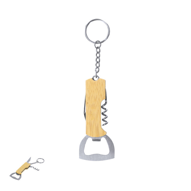 Portachiavi apribottiglie in bambù e acciaio inox con lama