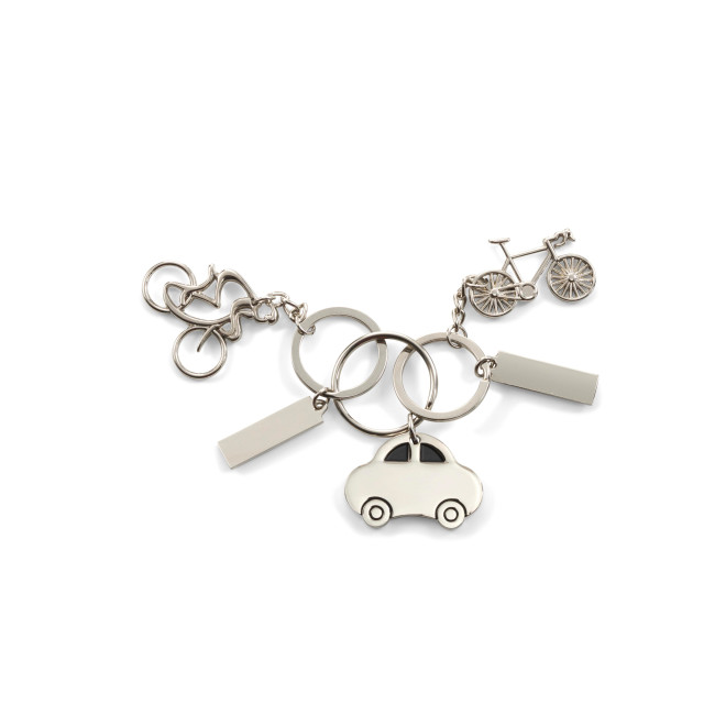 Portachiavi bicicletta in metallo con una placca rettangolare per incisione, confezione regalo