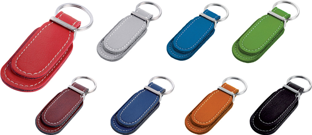 Portachiavi in ecopelle con cuciture a contrasto e anello in metallo