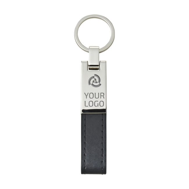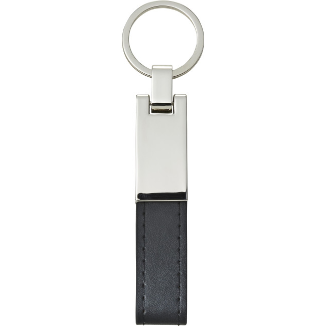 Portachiavi in acciaio placcato in argento con anello in PU, in confezione regalo