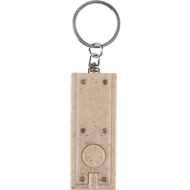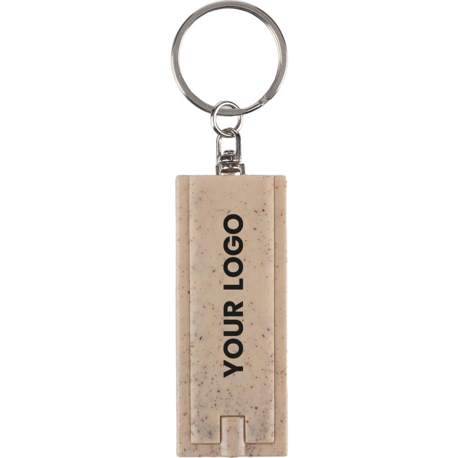 Portachiavi in ??paglia di grano con luce Led singola, anello in metallo, confezionato singolarmente in polybag di plastica riciclata, batterie incluse