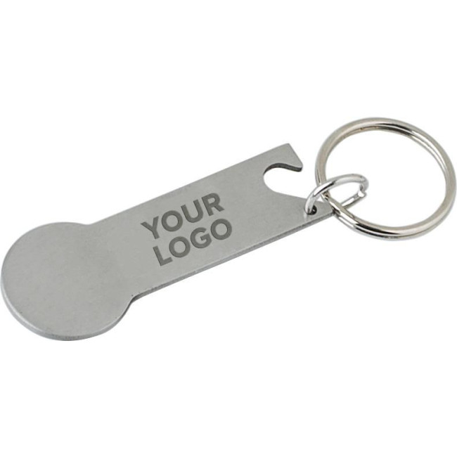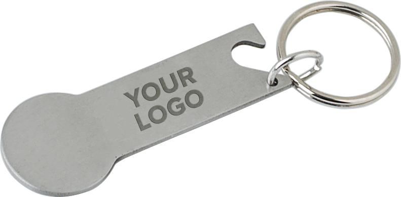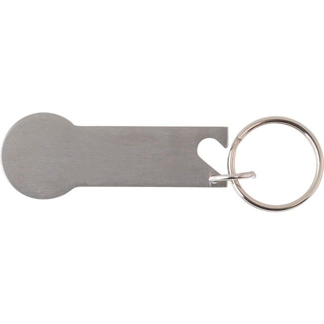 Portachiavi multifunzione, chip portamonete e funzione apribottiglie, confezionato in polybag, in acciaio inox