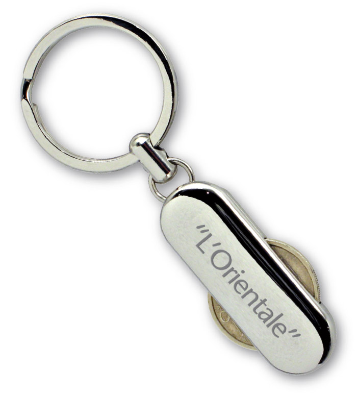 Portachiavi "You Young Coveri" dotato di anello in metallo e porta euro, confezionato in un elegante cartoncino. Questo accessorio è progettato per tenere le chiavi in ordine e a portata di mano, combinando praticità e stile.