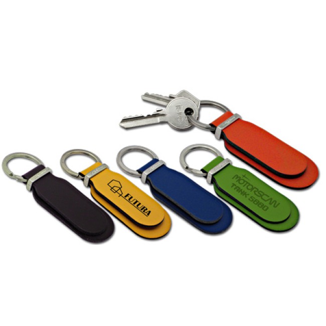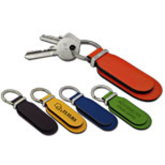 Portachiavi "You Young Coveri" in cuoio rigenerato colorato e particolari cromati. Bustina singola in pvc.
