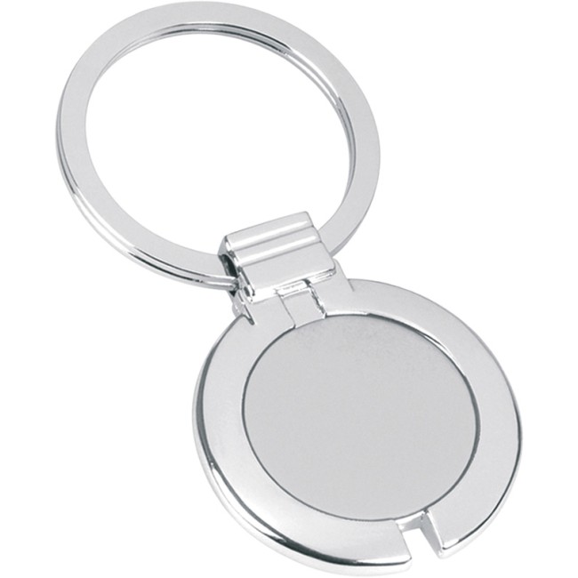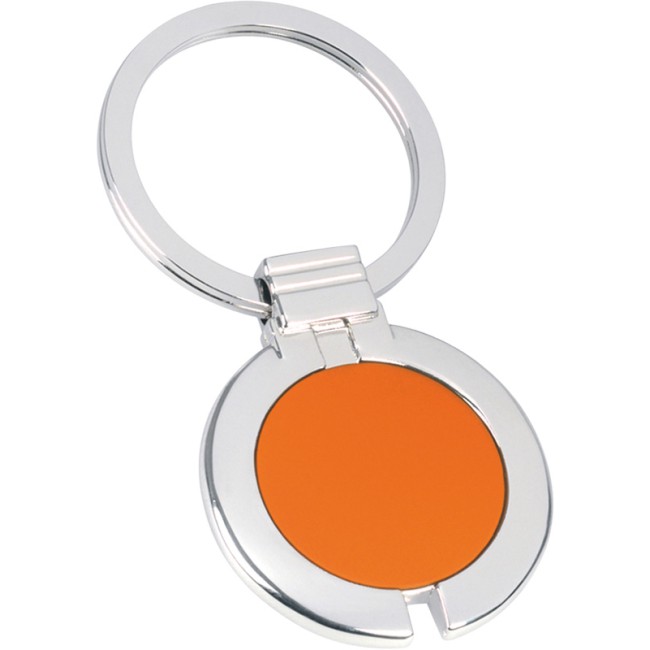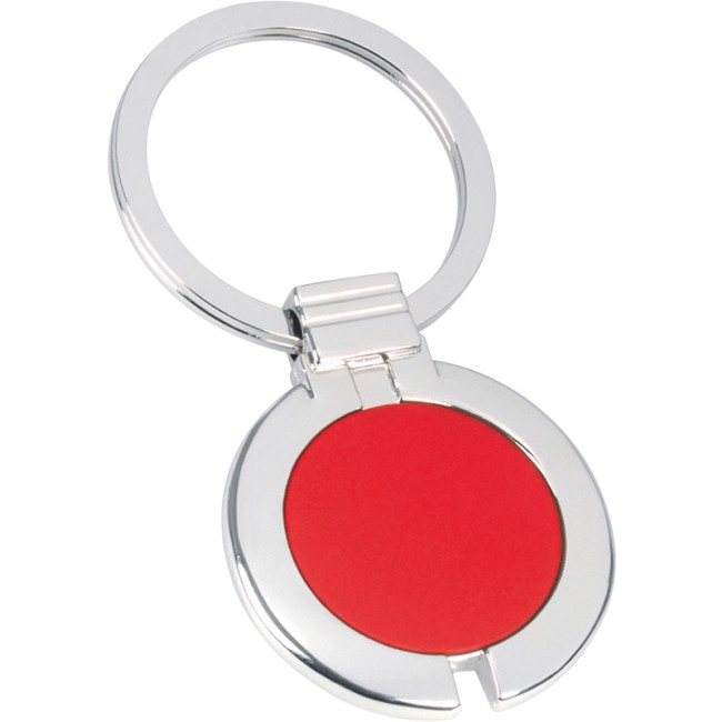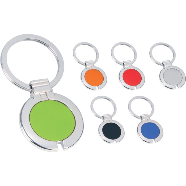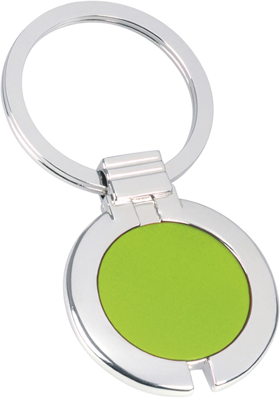 Portachiavi magnetico ad anello piatto, in metallo, fronte lucido e retro con disco estraibile per carrello spesa.colorato. Confezione in scatola.