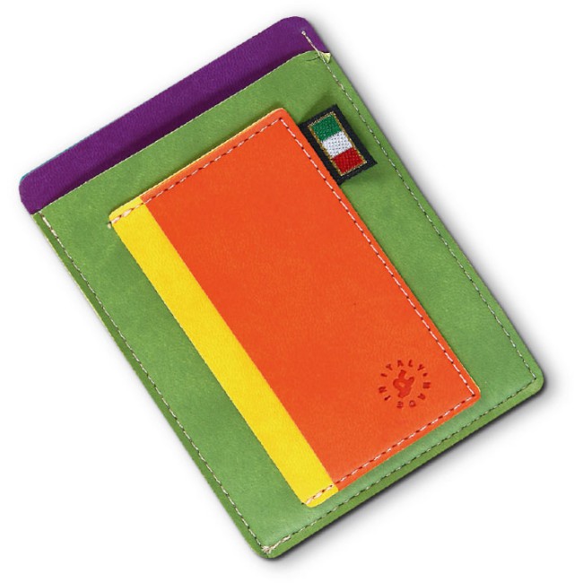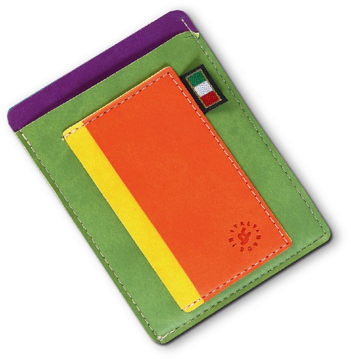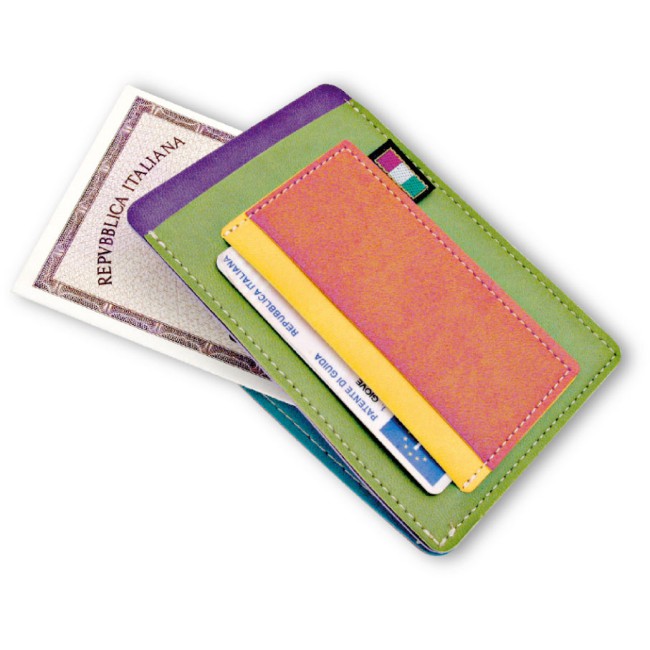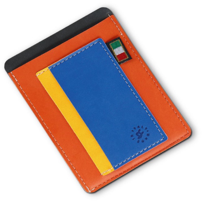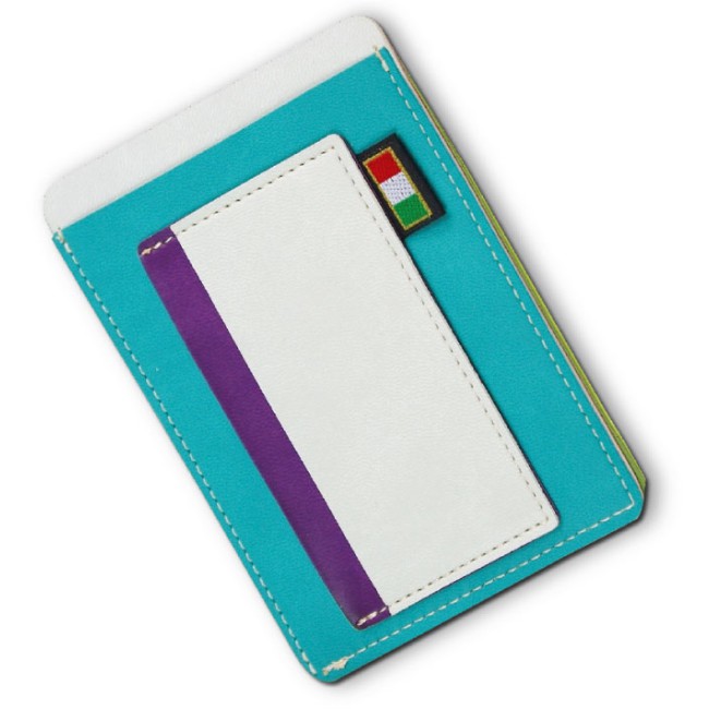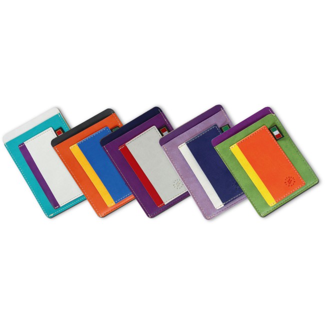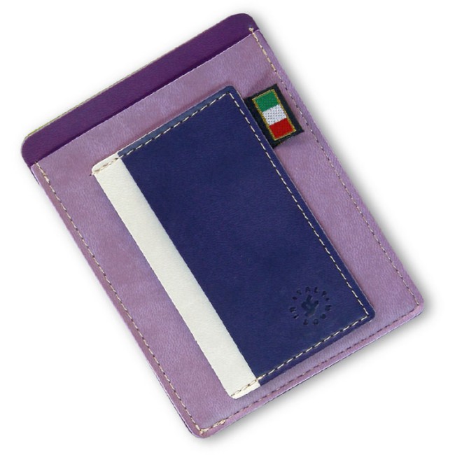 REFLEXA portacarte di credito in vivella accoppiata, elastico blu. Con bustina in cellophane.