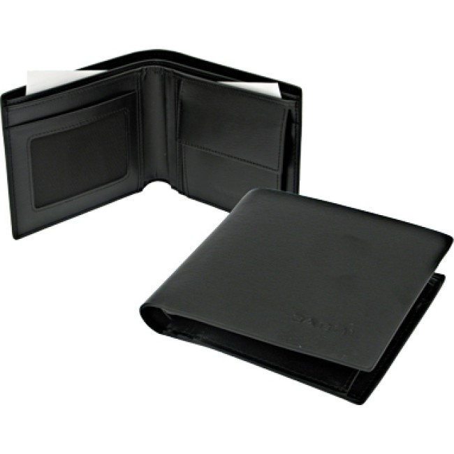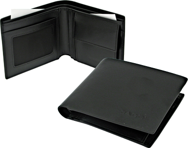 Portafoglio "Eagol" in pelle pieno fiore nera, lavorazione taglio vivo. Portacarte di credito, portapatente, portamonete, portabanconote doppio scomparto.