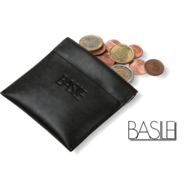 Portamonete con clip BASILE in pelle nera. Confezione in scatola BASILE.