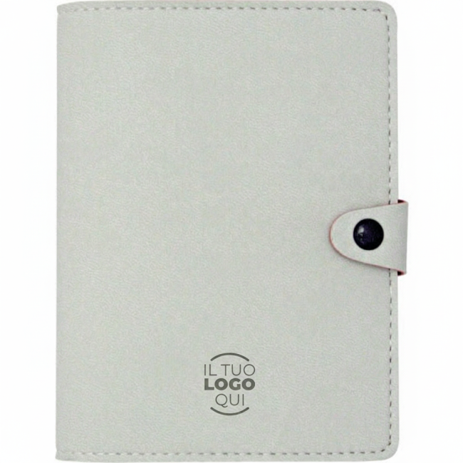 Portapassaporto realizzato in Vivella bicolore, dotato di tasche portabiglietto e chiusura con passante a bottone. Con un formato di 11X13, è una soluzione compatta e professionale per organizzare documenti di viaggio. Personalizzabile con logo per un tocco distintivo.